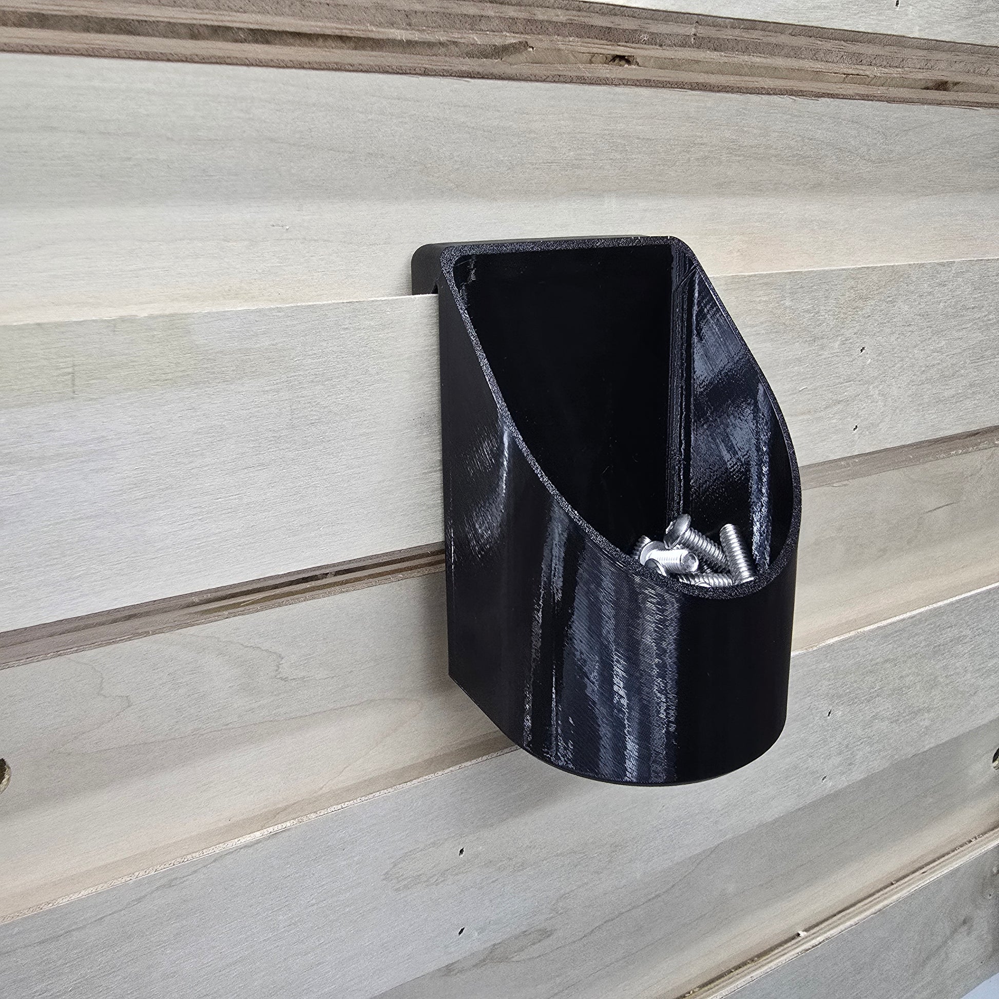 This French Cleat Hardware Bin allows for easy storage of screws and other hardware. Multiple bins can be placed next to eachother for expandable storage. The bin mounts to a french cleat wall at least 3/4" thick.