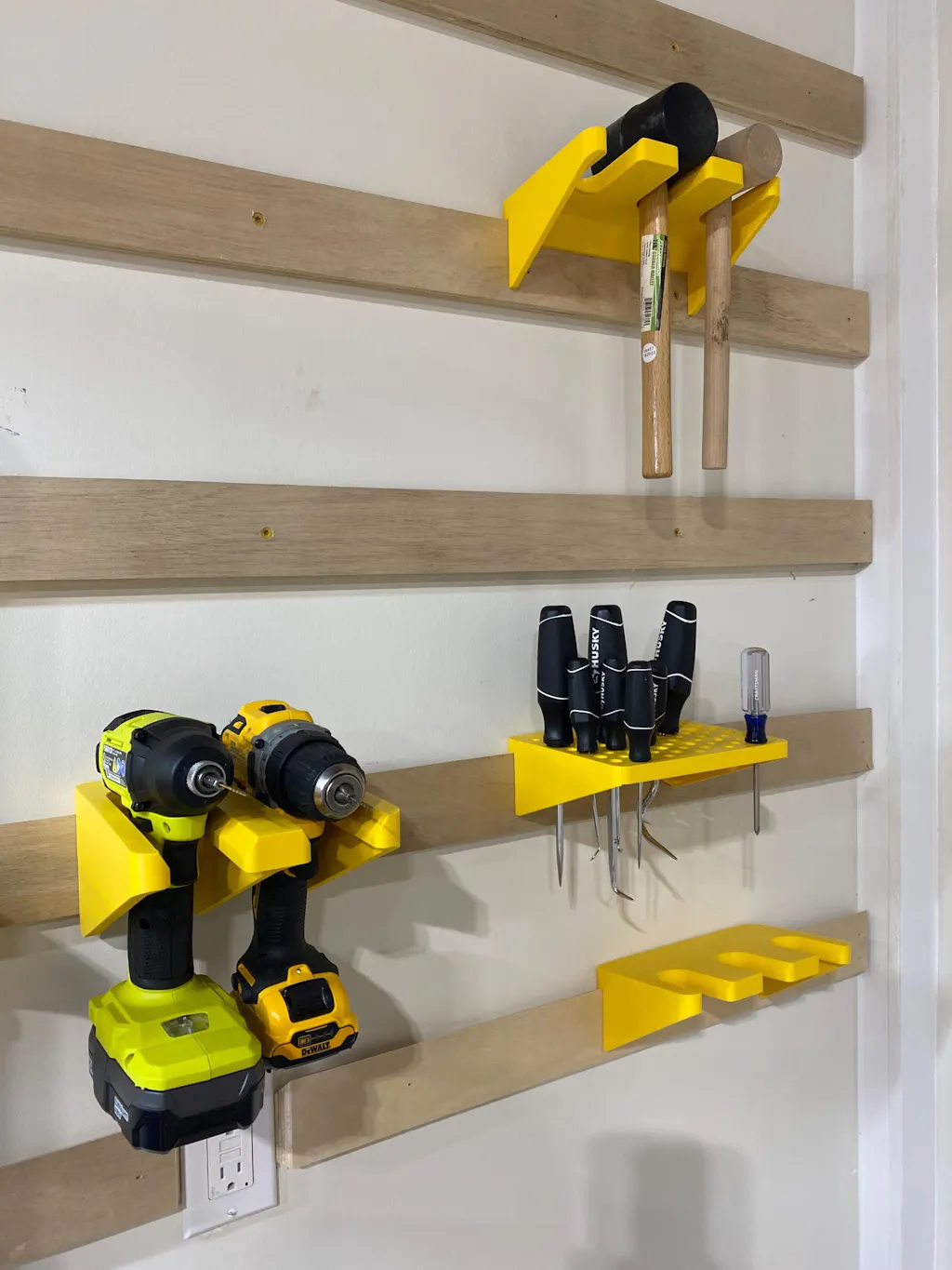 This spray can rack holds five 2.625 inch diameter spray cans. It can be direct mounted to a wall using cabinet screws or to a 3/4 inch thick french cleat.